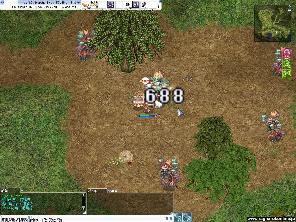 武器は火ダマ1本。レスをメインに狩ります。かまきりはタゲられたら処理、